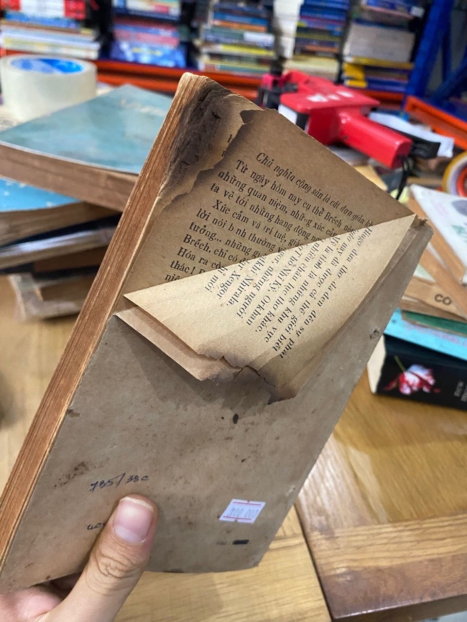 Tình trạng : gáy tróc, cháy xém gọc cạnh ở phần sau, không ảnh hưởng đọc